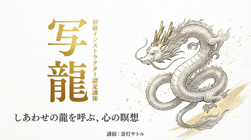 この講座では、4万部のベストセラー『写龍』の著者であり、全国の神社仏閣に個人として日本一の枚数(30枚以上)の天井画を描いている大天井画絵師斎灯サトルが講師を務めます。