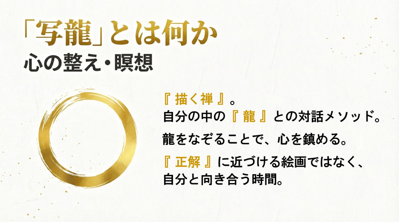 「写龍」とは、『しあわせの龍を呼ぶ、描く禅』