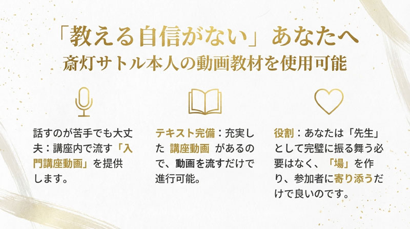 これにより、初めての方でも受講者の満足度を高めることができます。