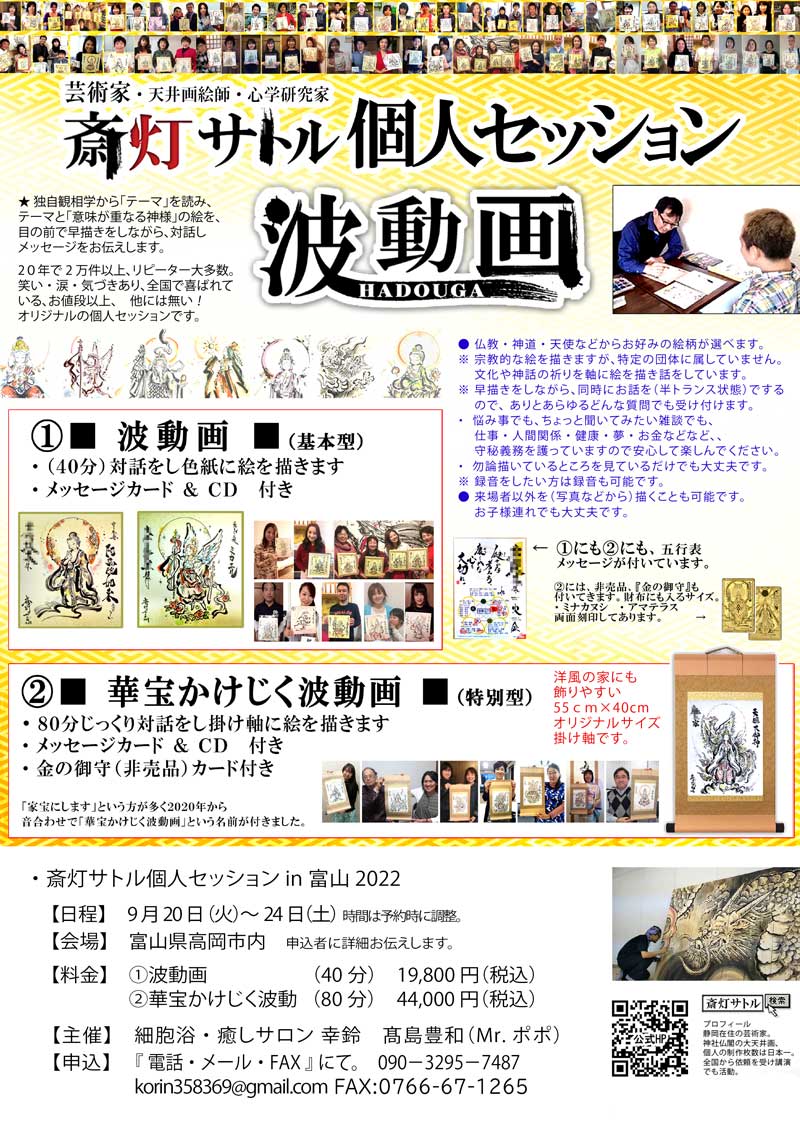 富山県高岡市 ・9/20(火)~24(土)●斎灯サトル個人セッション