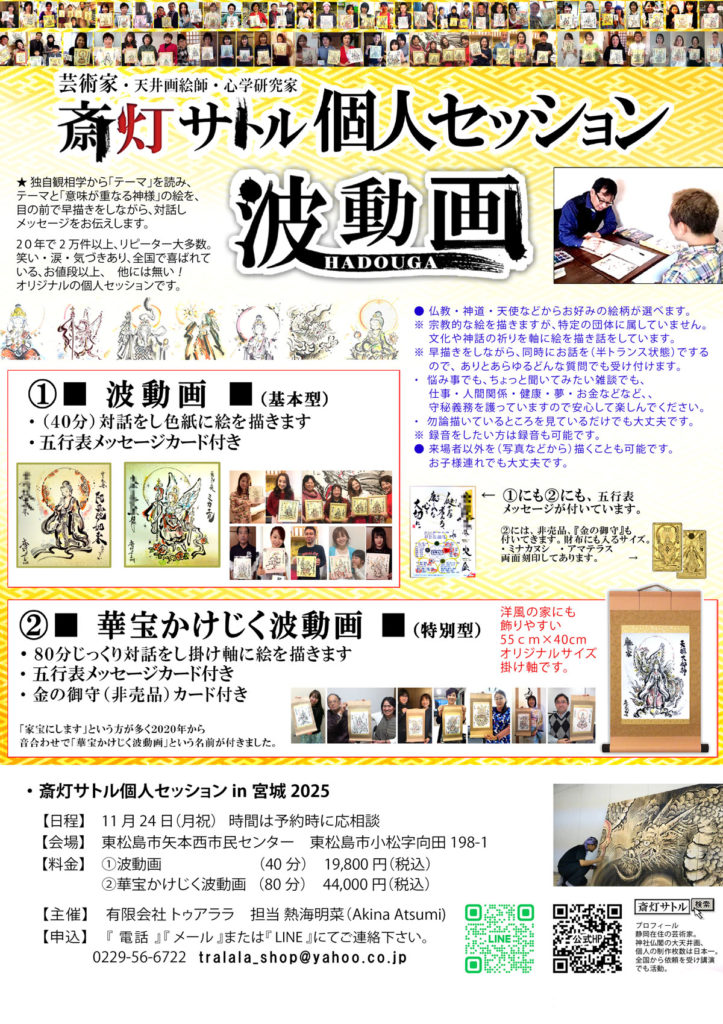 天井画絵師『斎灯サトル』個人セッション、この世で一枚のあなたの『波動画』を描きます。